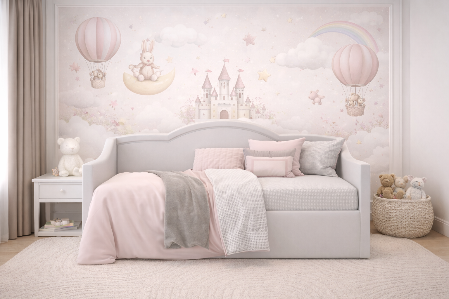 Kolorystyka: pudrowy róż, błękit, szarość. Możliwość zamówienia indywidualnej kolorystyki.