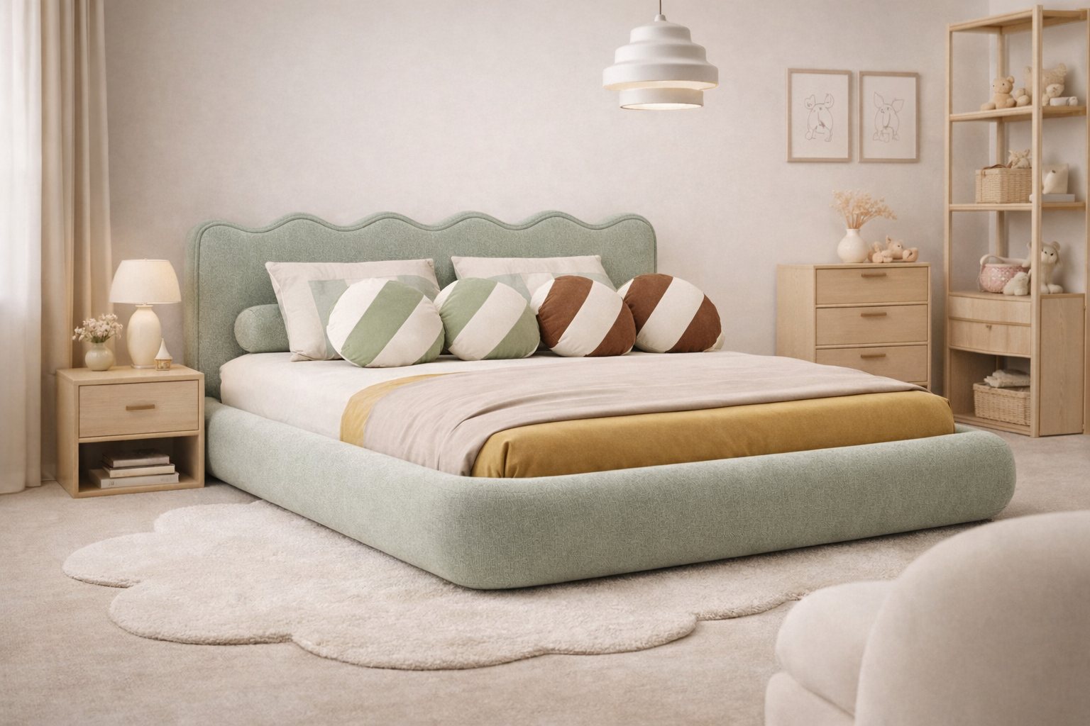 Łóżko Ocean to esencja spokoju, komfortu i miękkiej, organicznej formy inspirowanej falami oceanu. Jego charakterystyczne, falujące wezgłowie nadaje wnętrzu lekkości i wyjątkowego, designerskiego wyrazu, jednocześnie tworząc przytulną przestrzeń do odpoczynku.